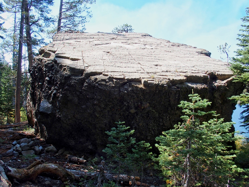 This lava flow originated at the extinct Mount Pluto, which is located six miles west of Kings Beach, at the southern tip of the Northstar complex. It was active in the Pleistocene era, about 1-2½ million years ago. During that period, Lake Tahoe's shoreline was raised up and down to as much as 600 feet above its present level.