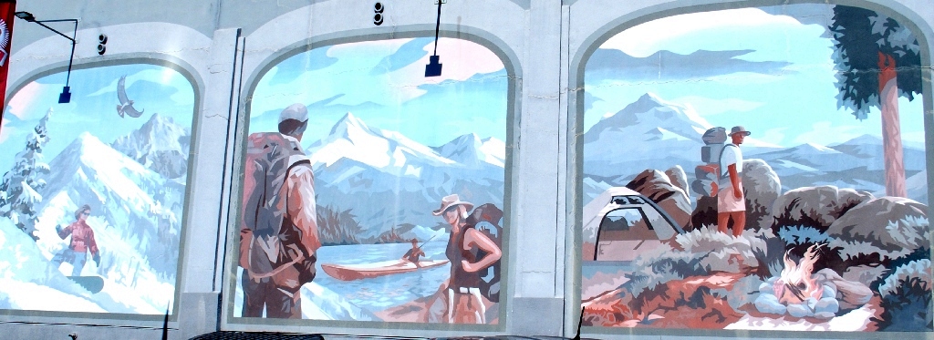 Behind an outdoor outfitter
