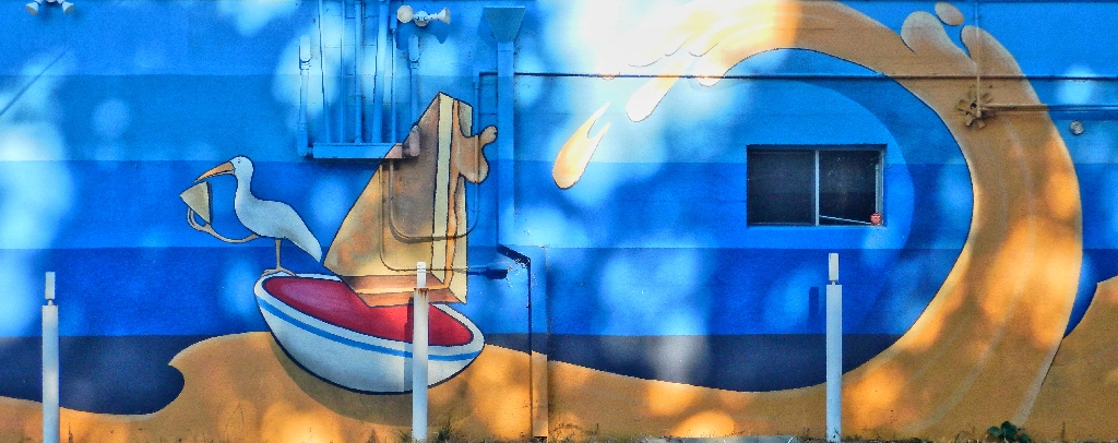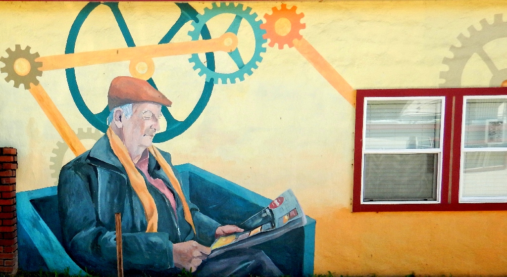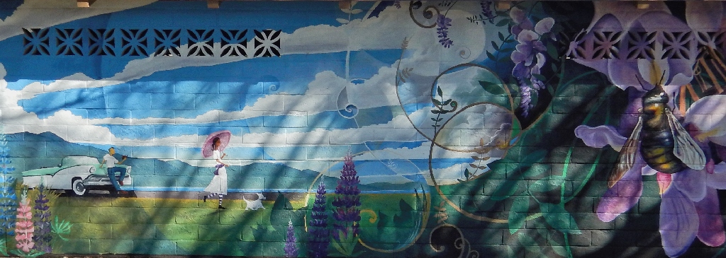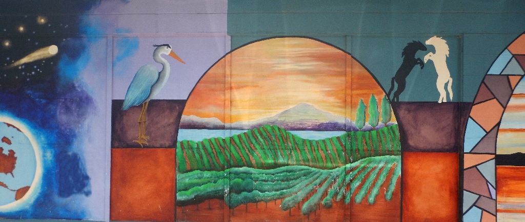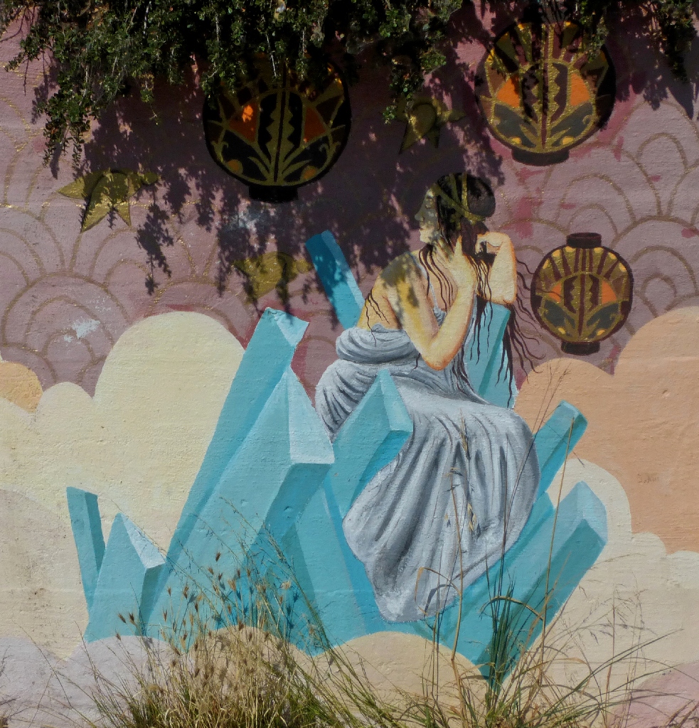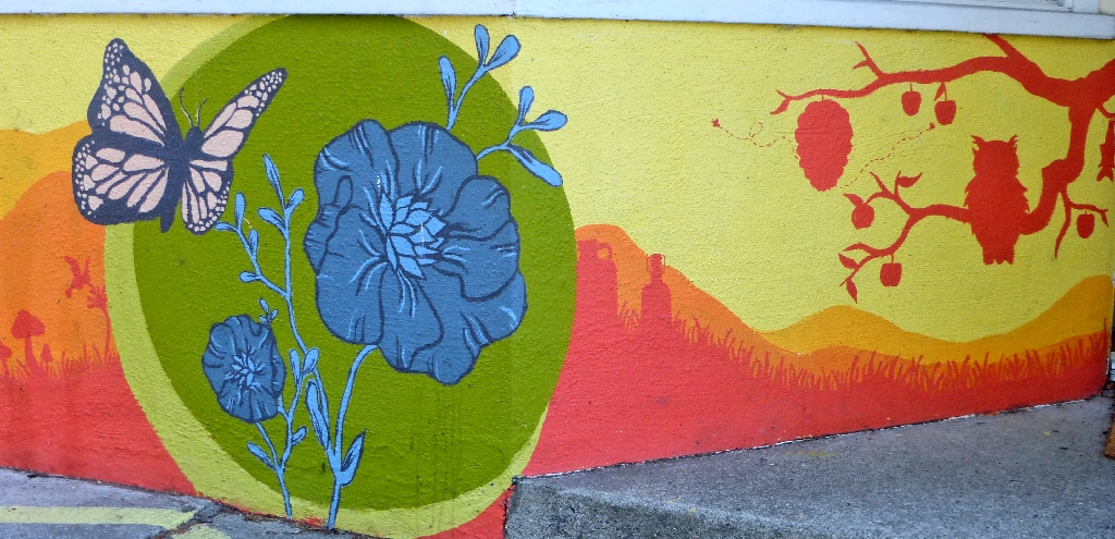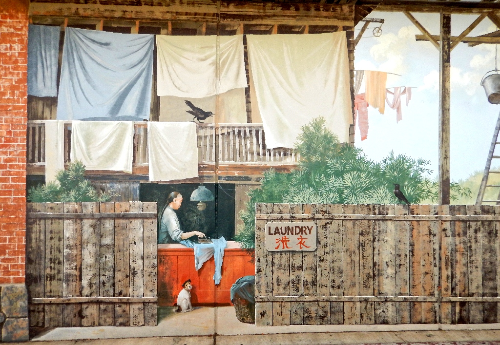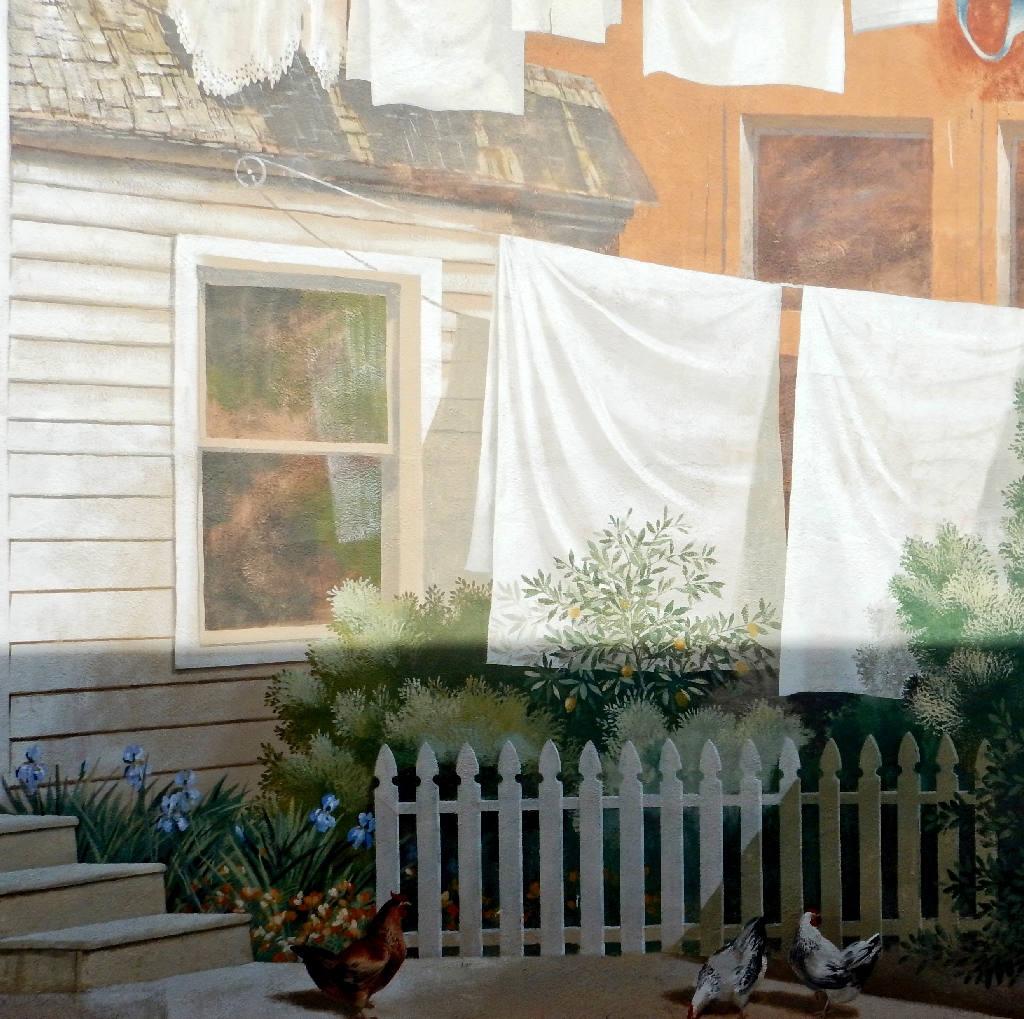 Facing the murals at the laundry