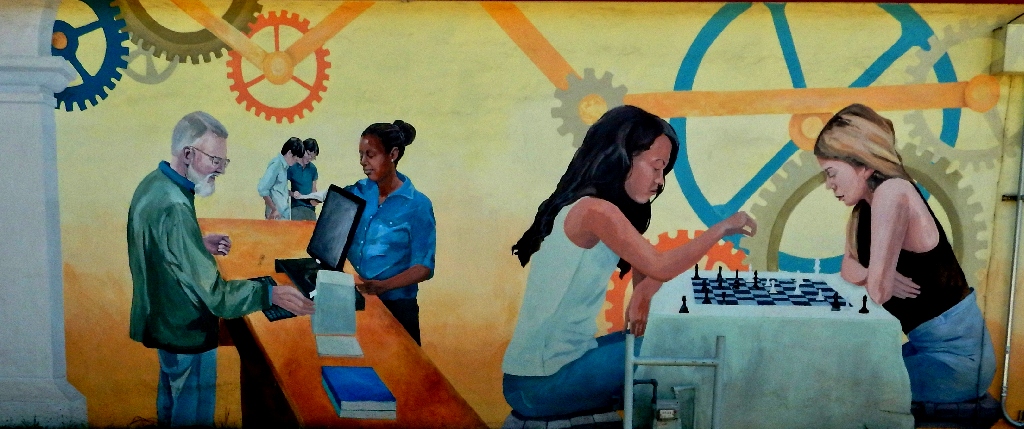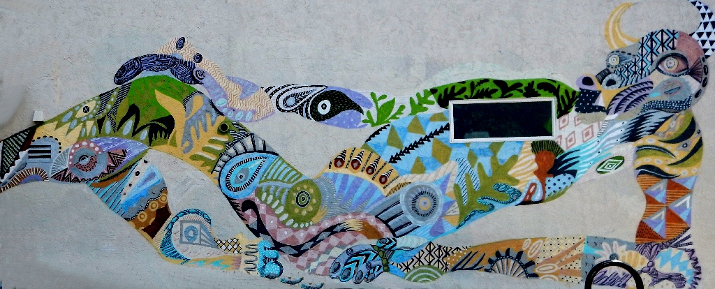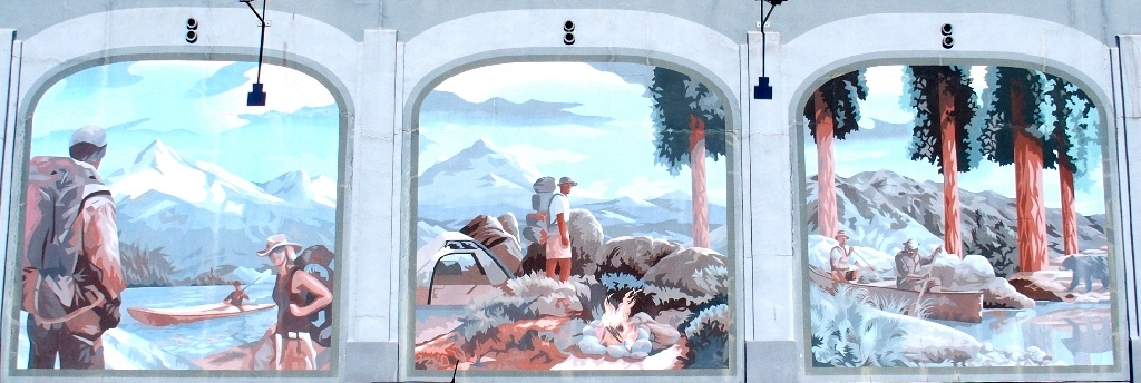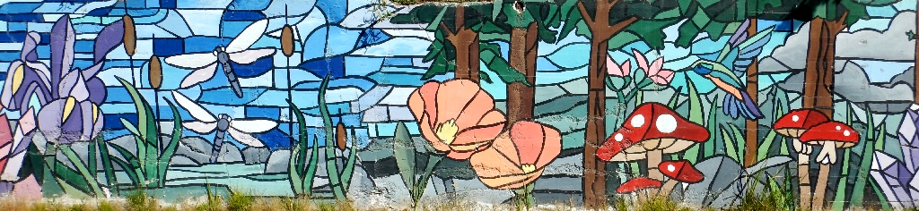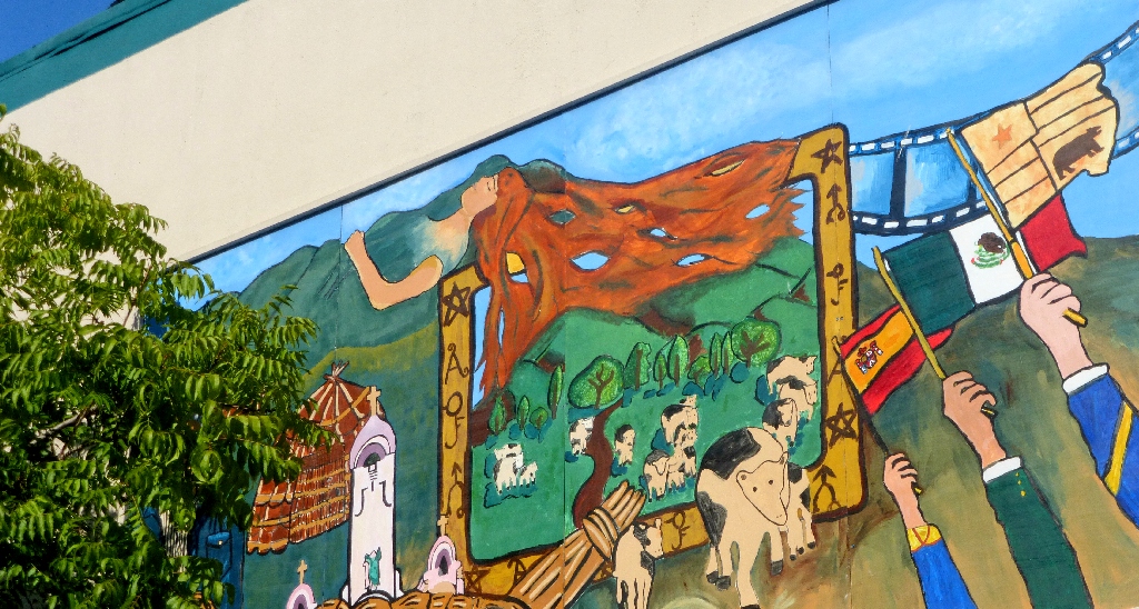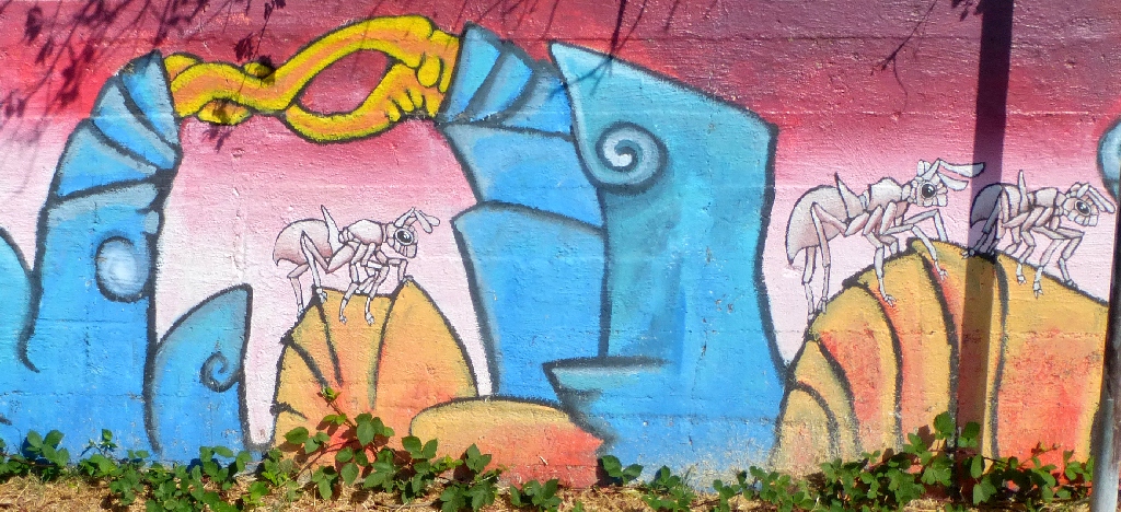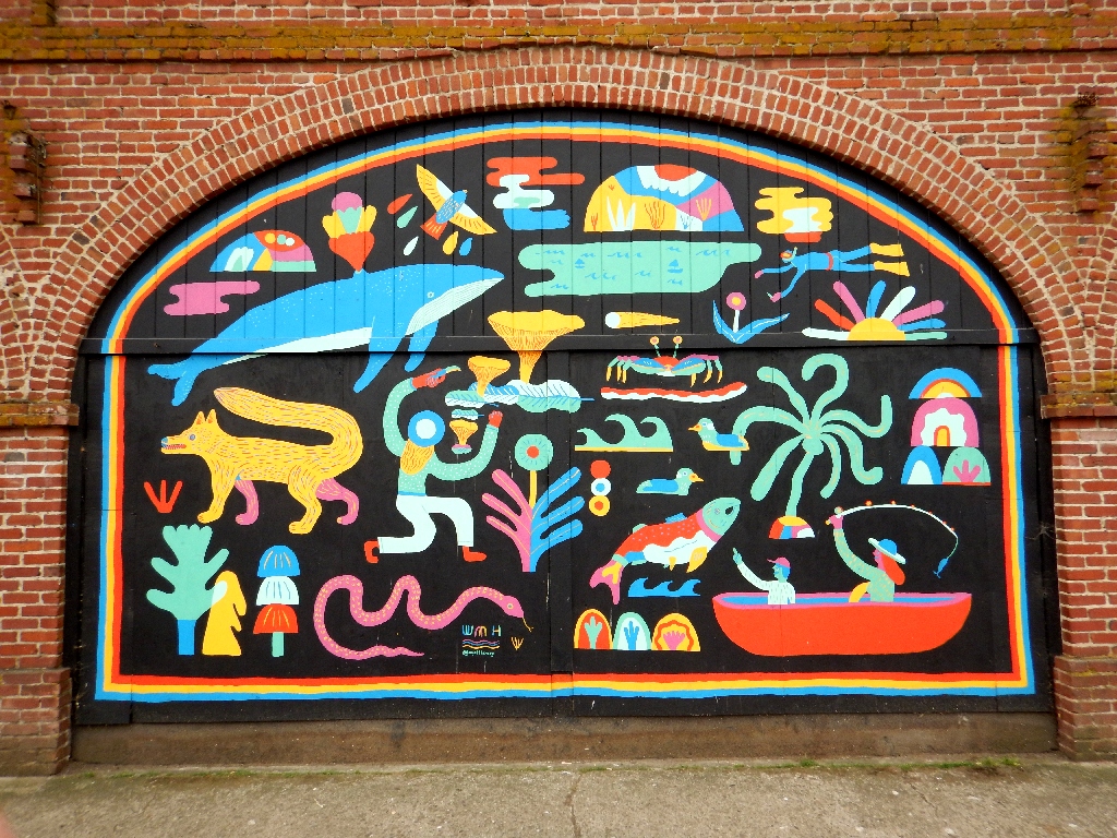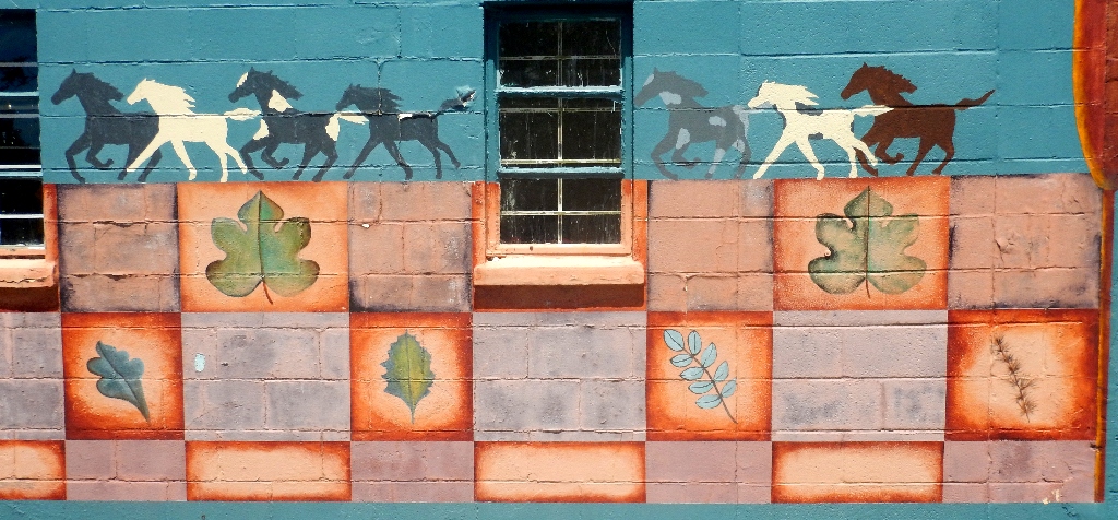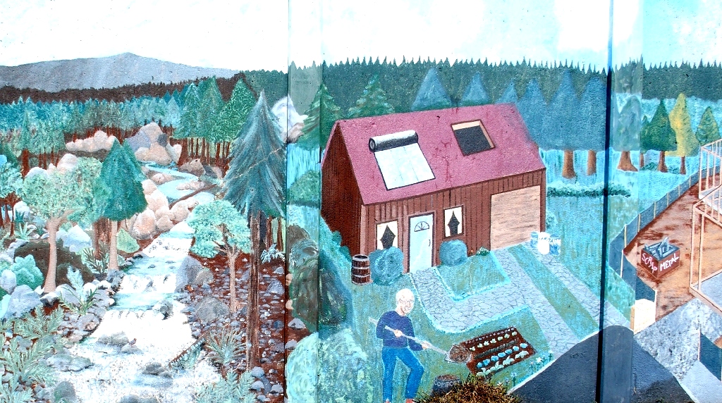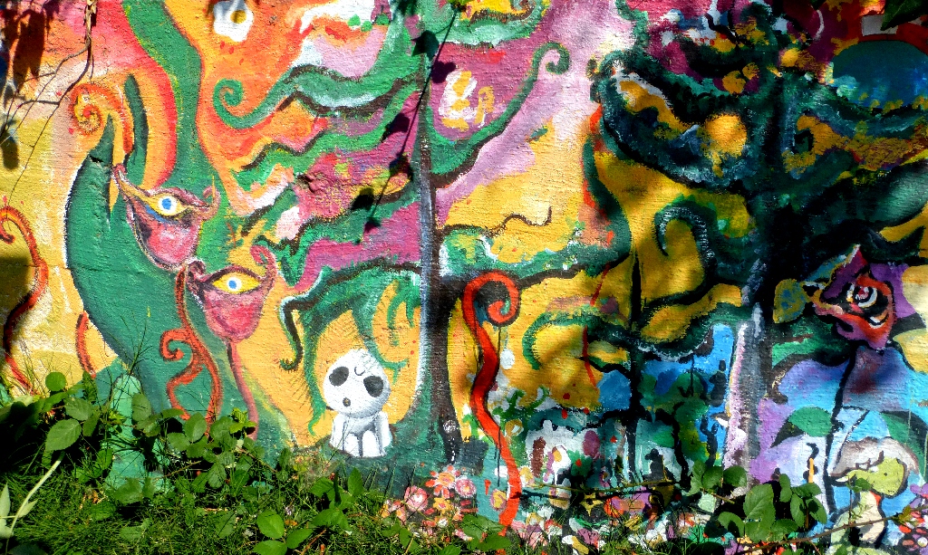 Facing the murals at the laundry