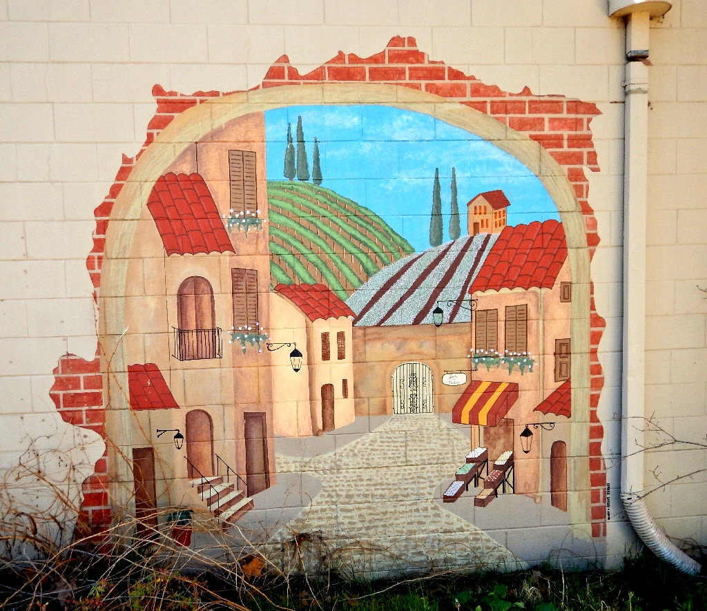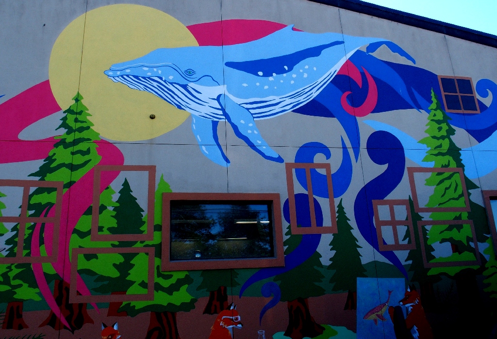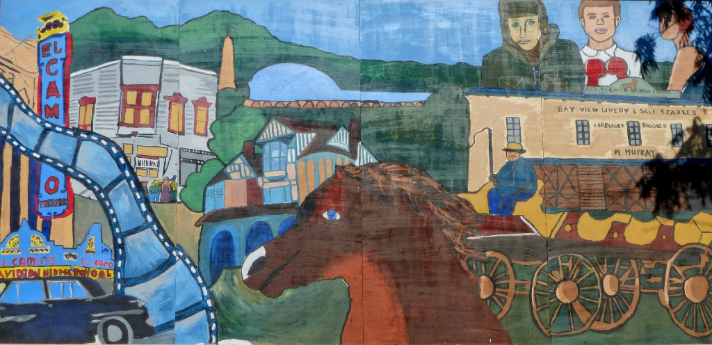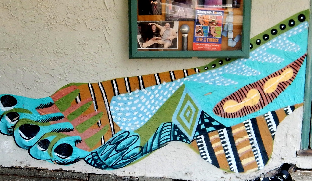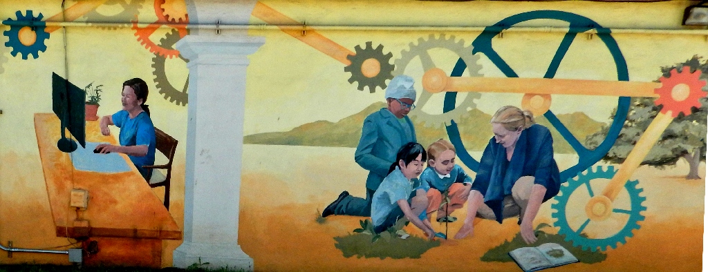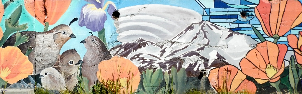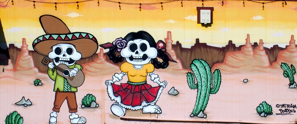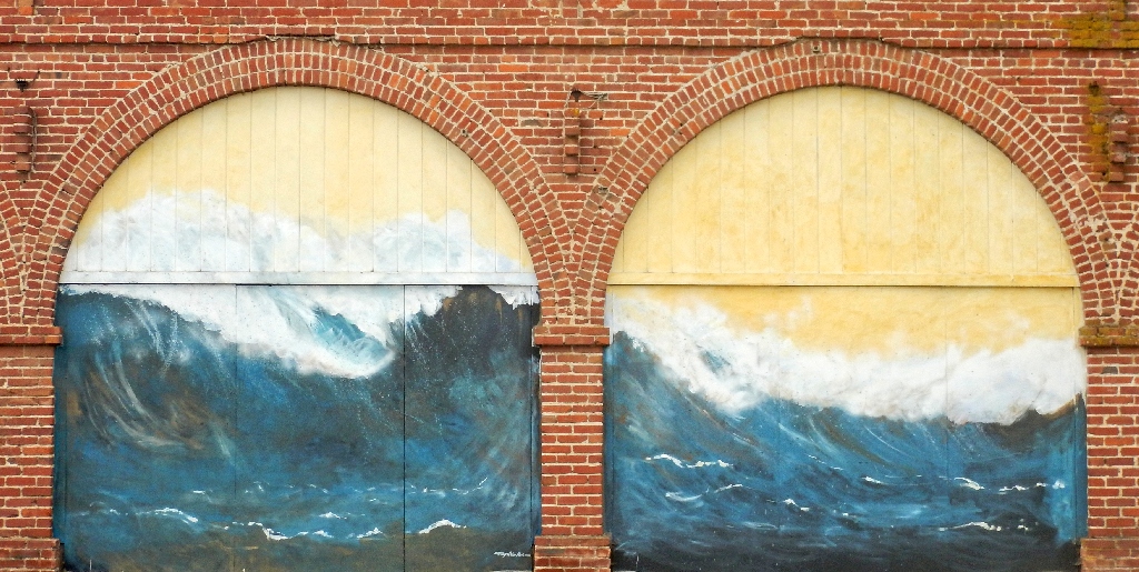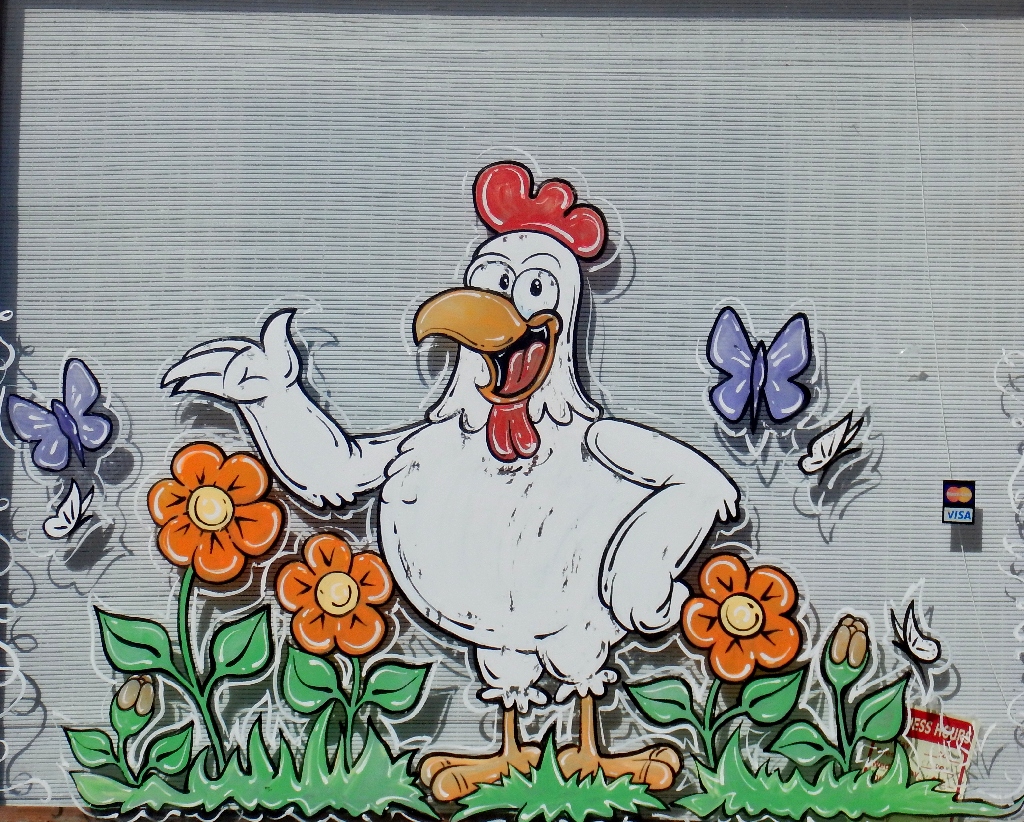 Facing the murals at the laundry