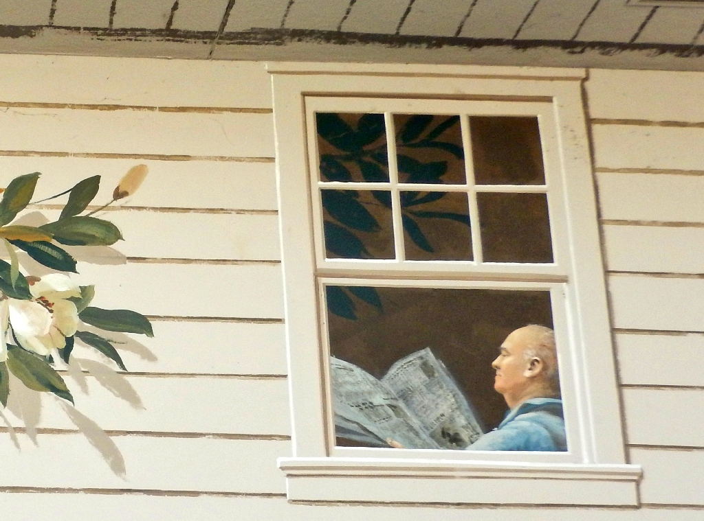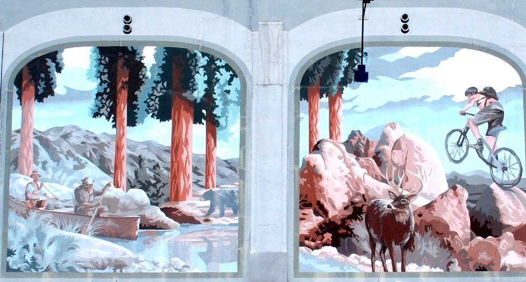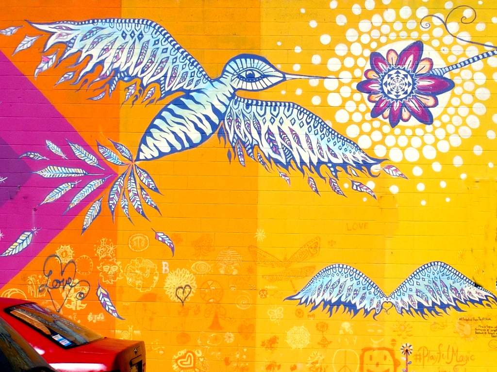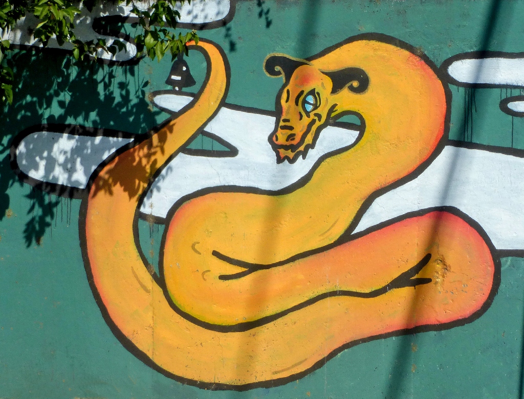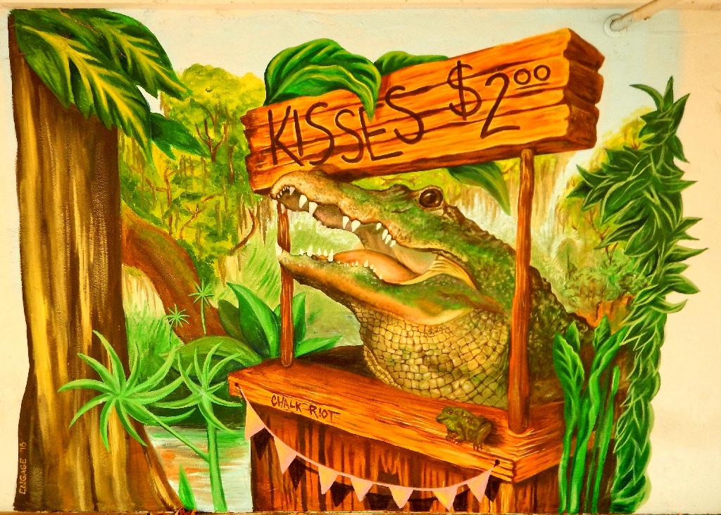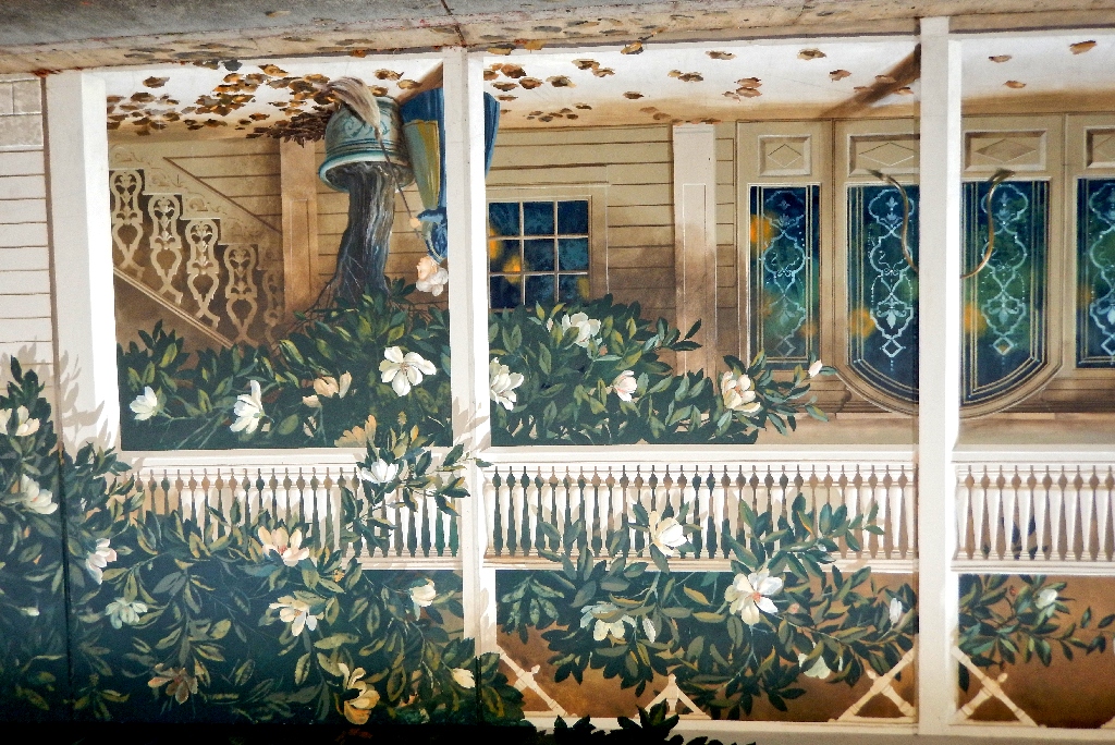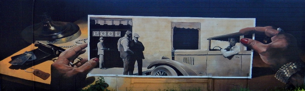 Facing the murals at the laundry