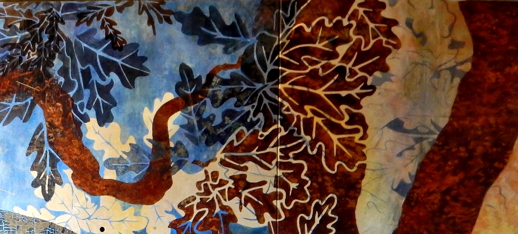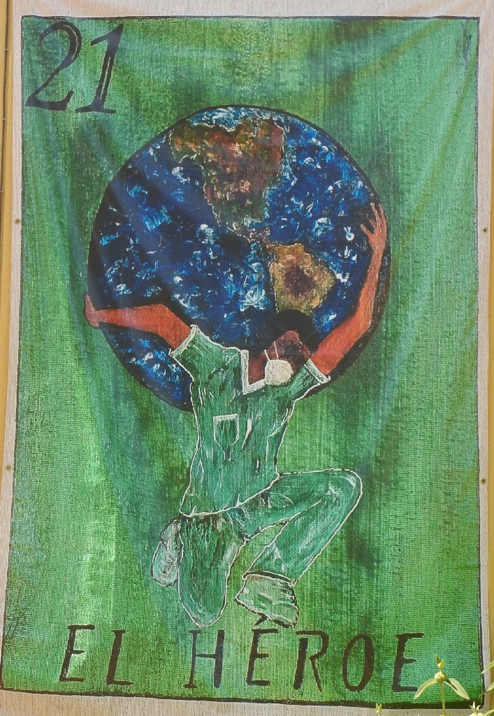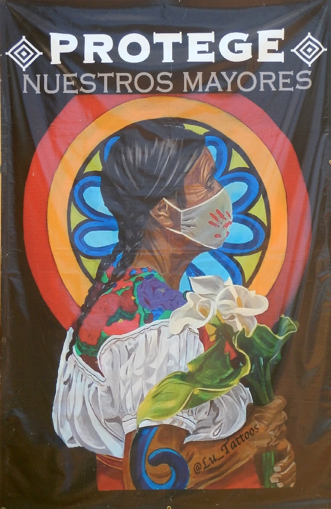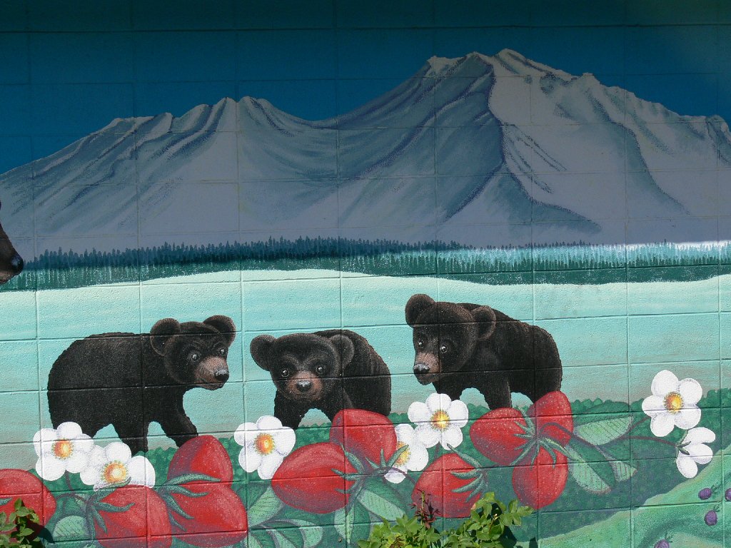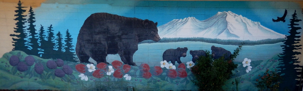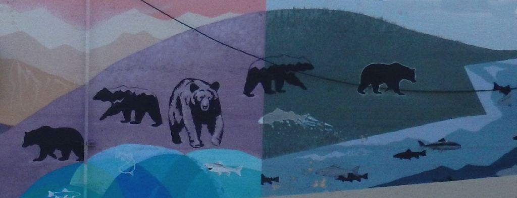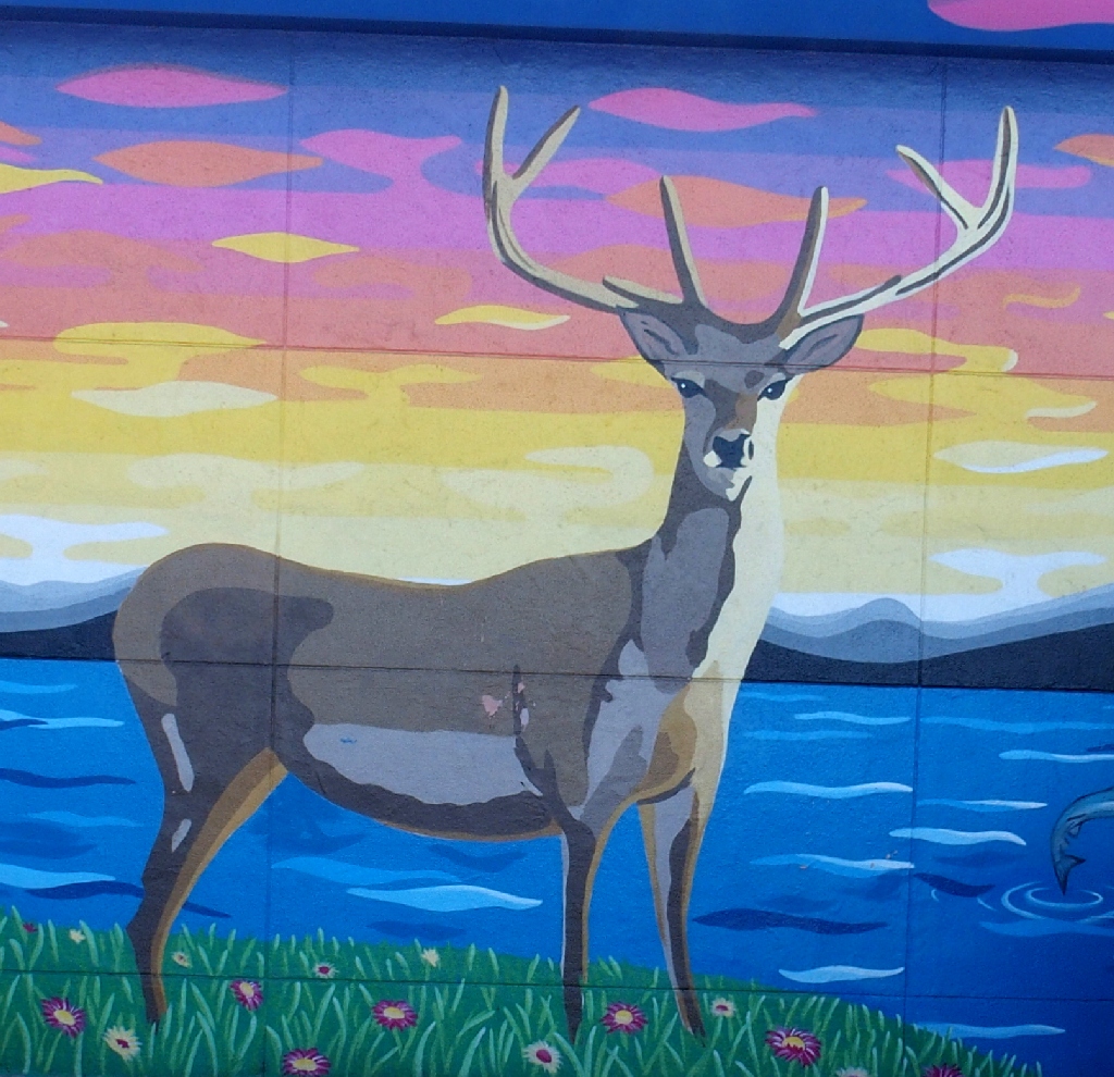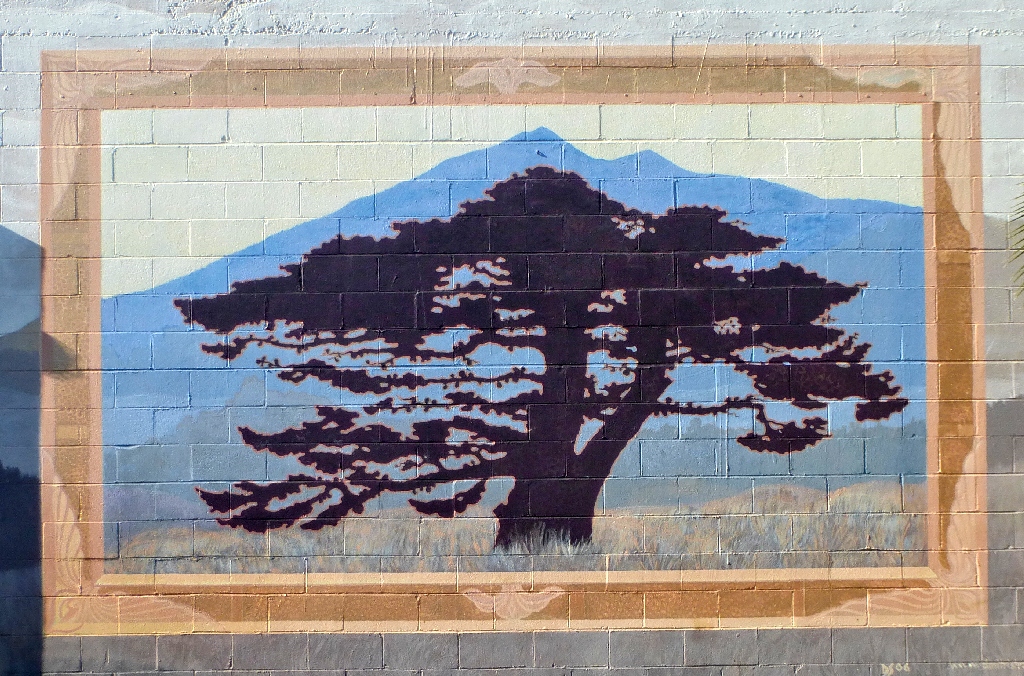 Facing the murals at the laundry