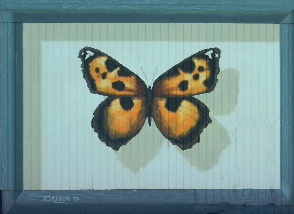 This amazing vision hides in disrepair on a little garage door