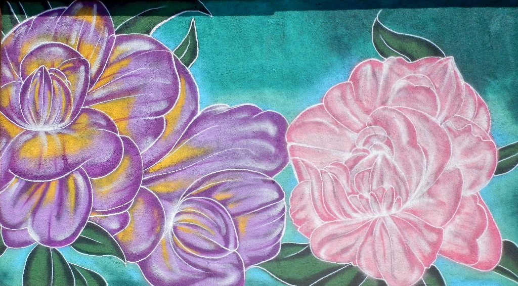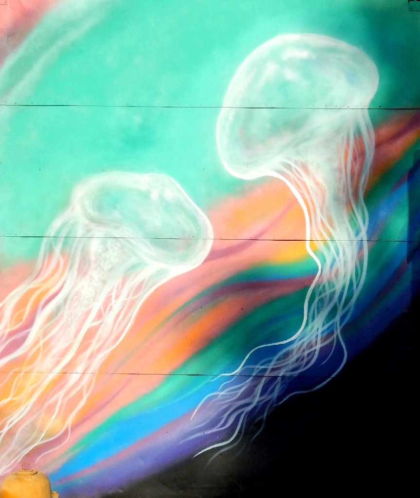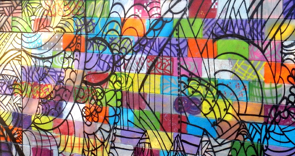 A great idea, but the patient partially died. The two murals are in seven pieces each, but there is no way actually to view the complete composite from a single location. The parallax effect was not accommodated.