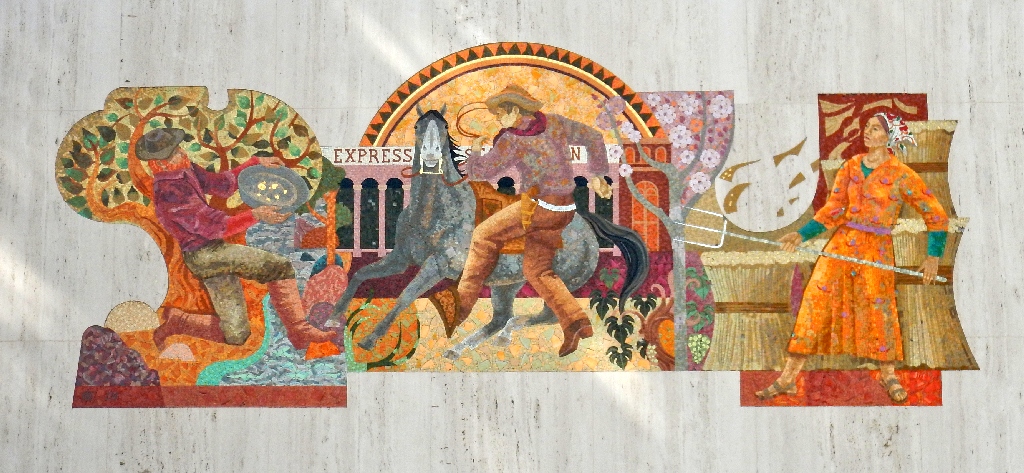 A gold panner, a Pony Express rider, and a farmer