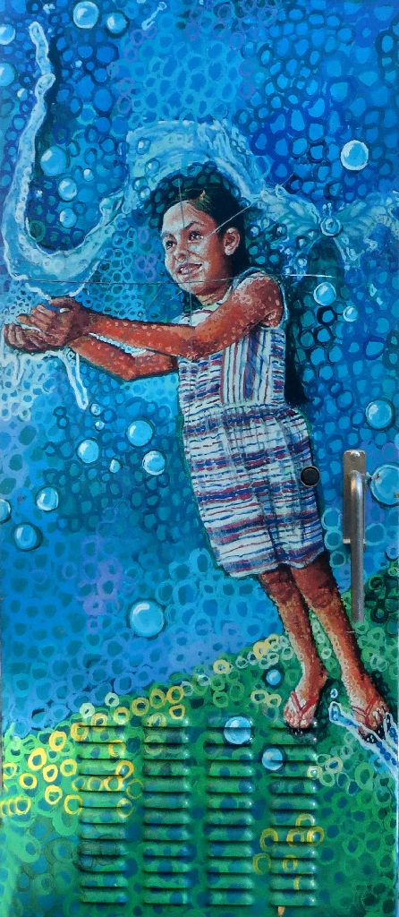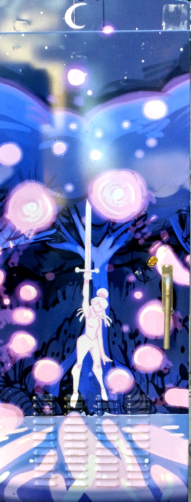 A marvelous new electrical box depicts downtown buildings