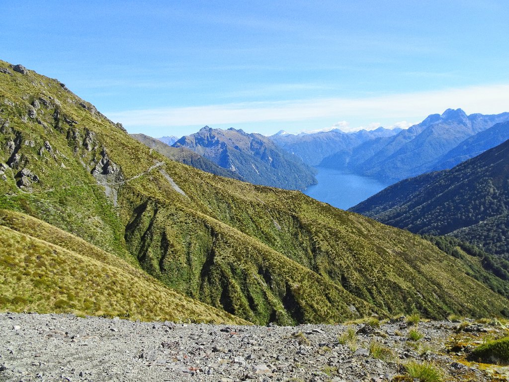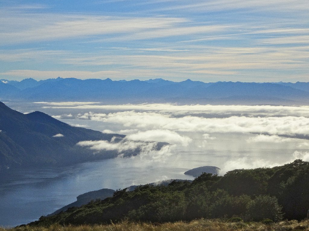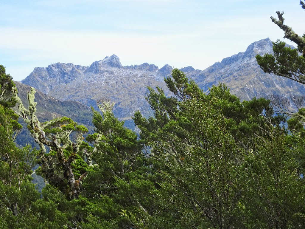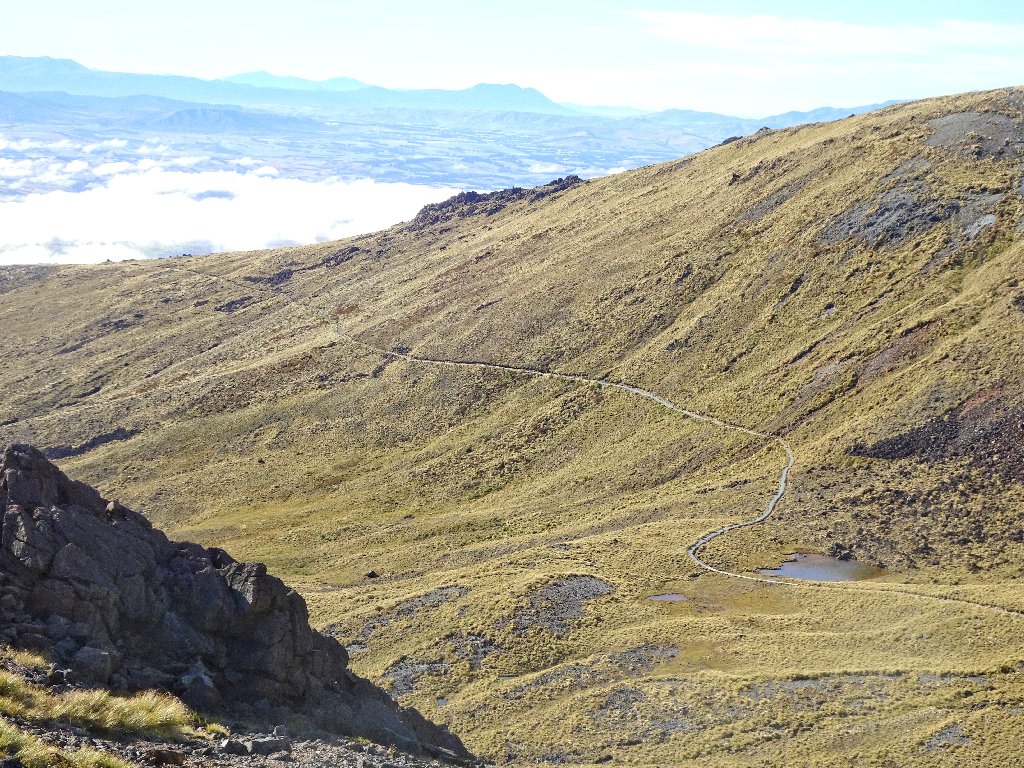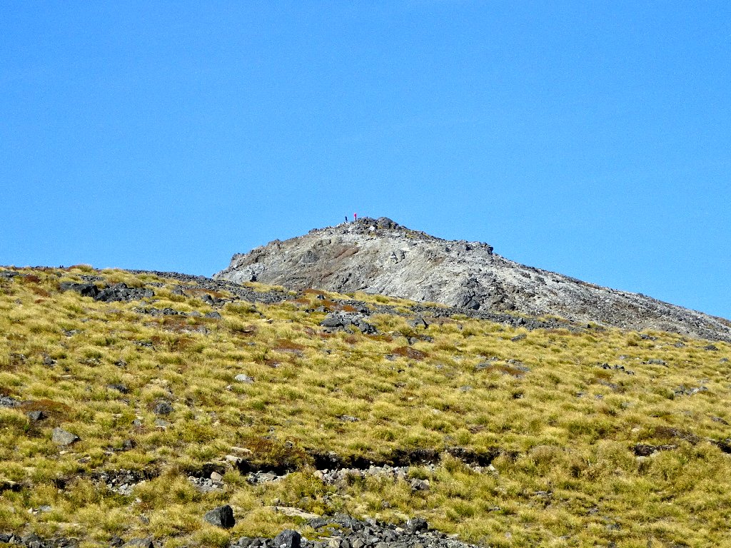 Dave and I elect to eschew the detour up to the mountain summit. It doesn't look as if the view would improve much, and the trail looks crappy, and it's a bit windy and cold already.