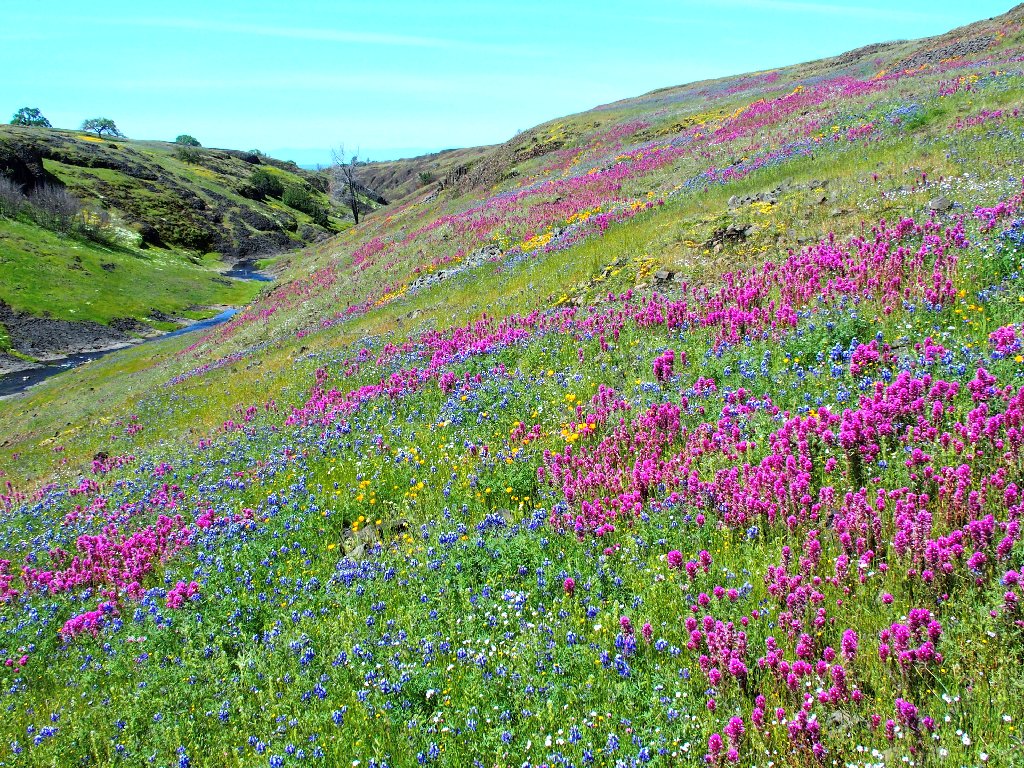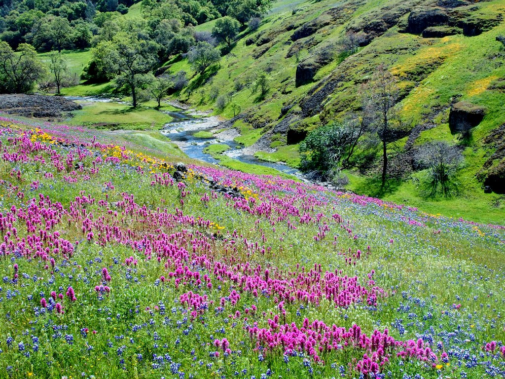 What a good day! The flowers were still out, the creeks were still flowing, and the grasses still were green.