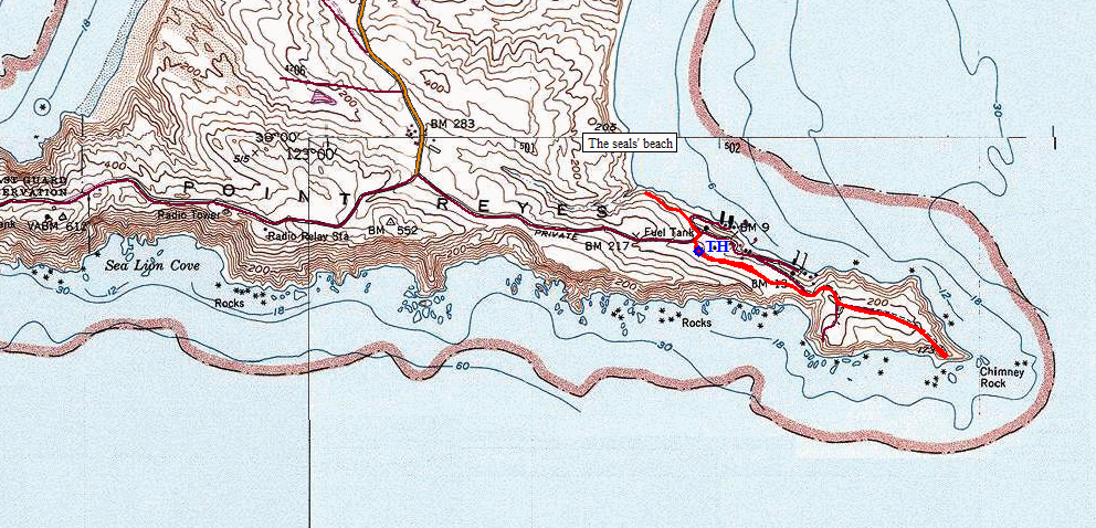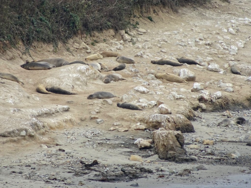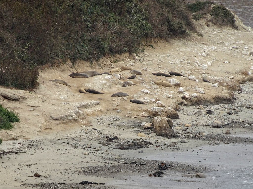 At the trailhead is a spur route over to an overlook of a beach inhabited by elephant seals, who returned to this area in 1981 after having disappeared for about 150 years. We must check it out, of course.