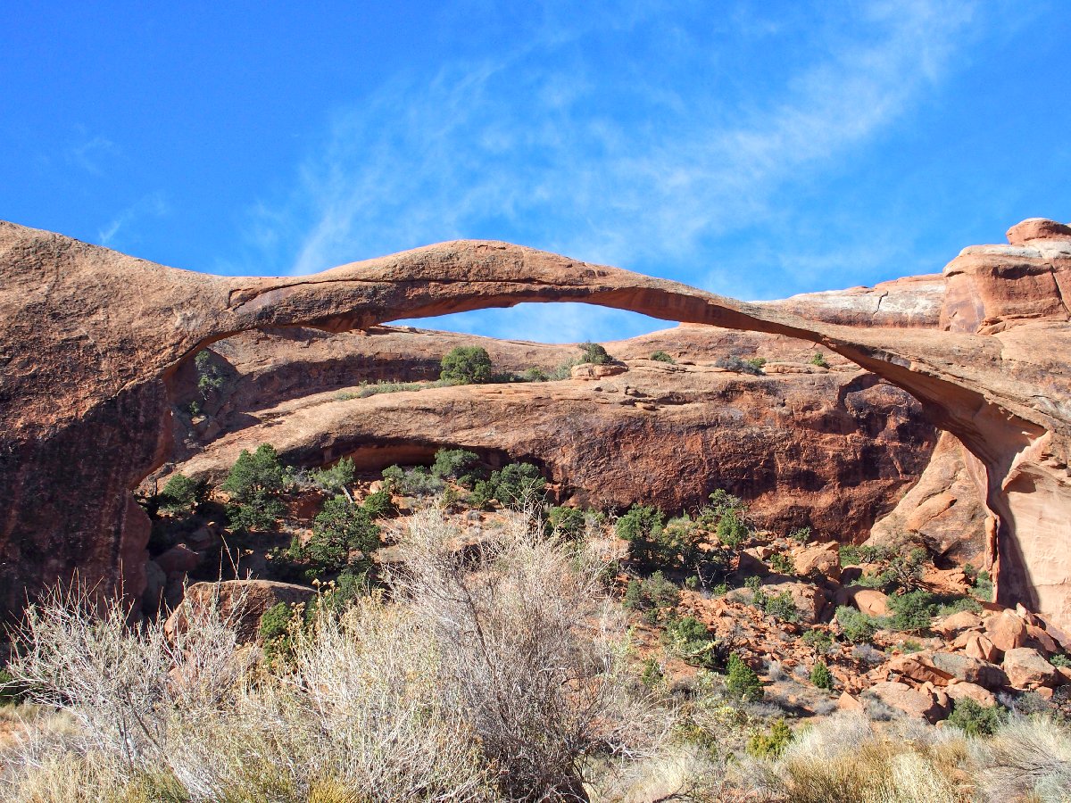 Landscape Arch is just the fourth or fifth-longest known span in the world (the folks at NABS, the Natural Arch and Bridge Society, are unsure); yet it surely is the most spectacular. It could collapse tomorrow, or it could last for another couple of centuries. In any case, visitors no longer are allowed to walk underneath it.