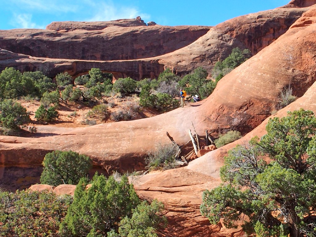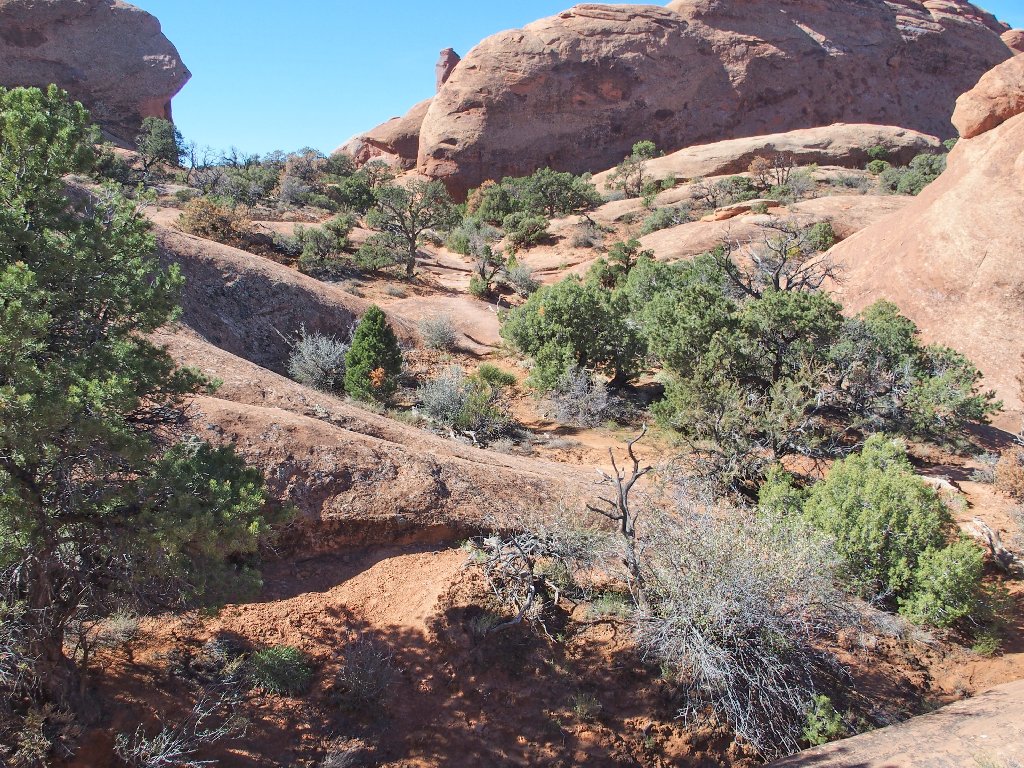 By forgoing the spur routes over to Partition Arch and Navajo Arch according to plan, the scrambling soon is over.