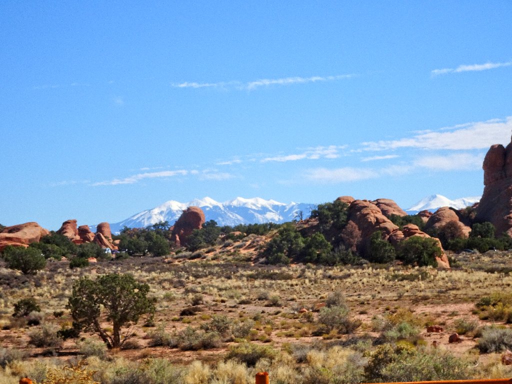 The La Sal Mountains provide a magnificent backdrop