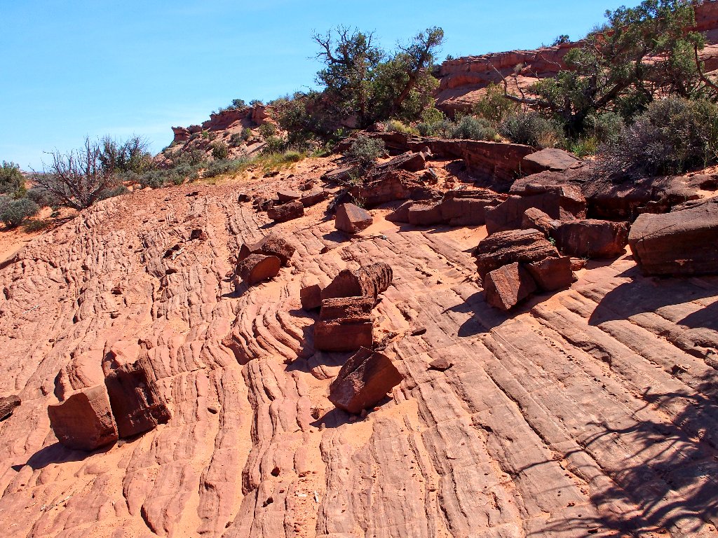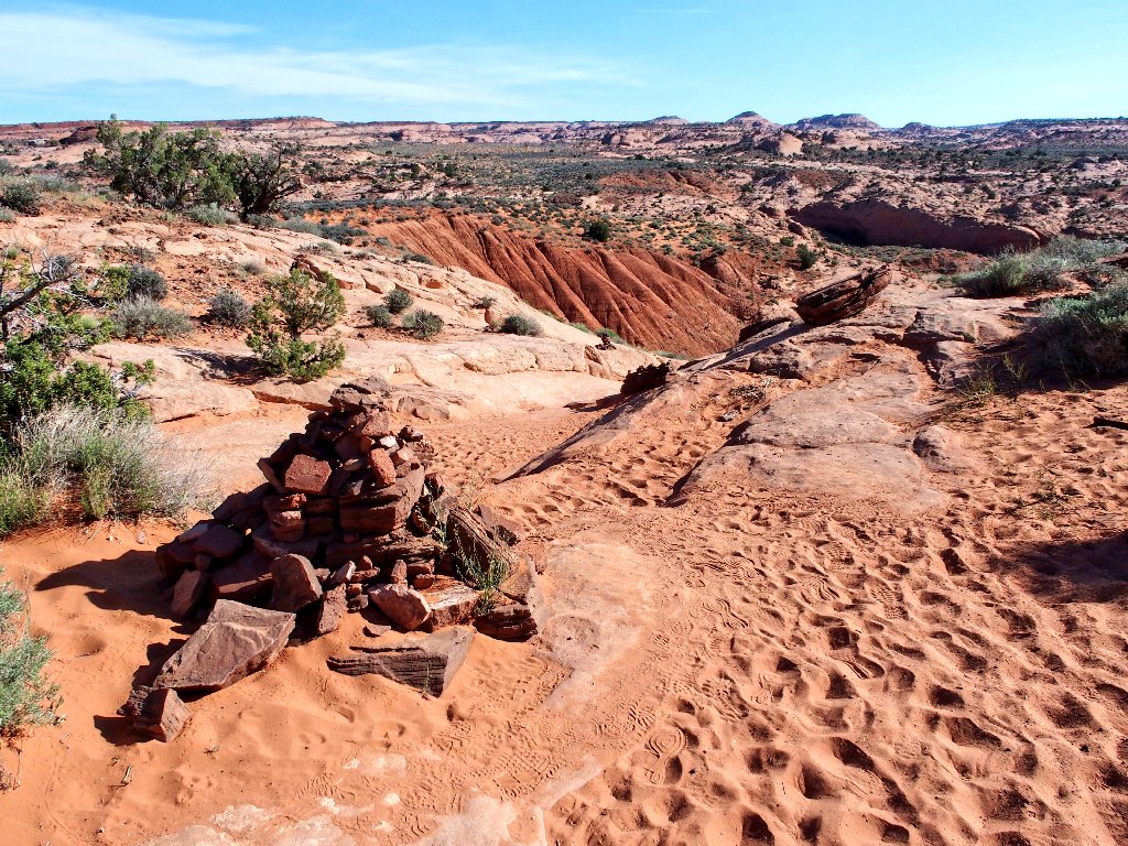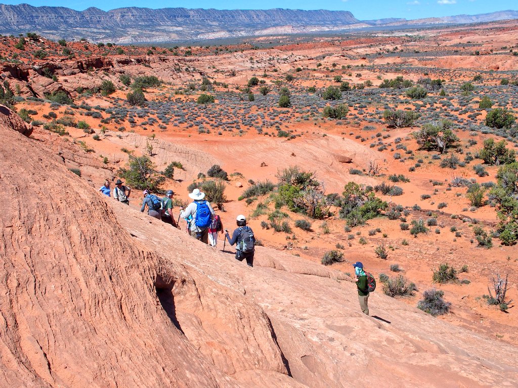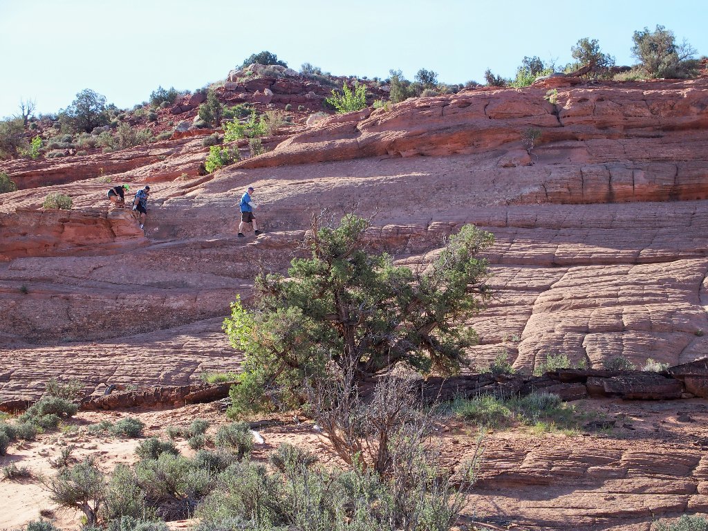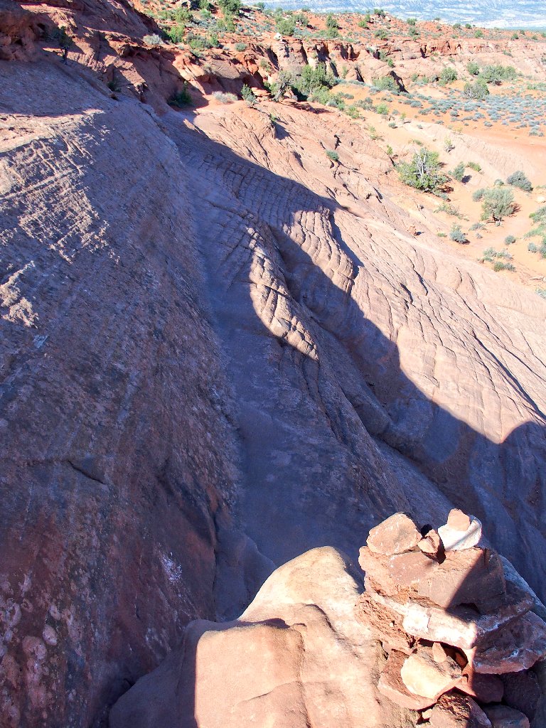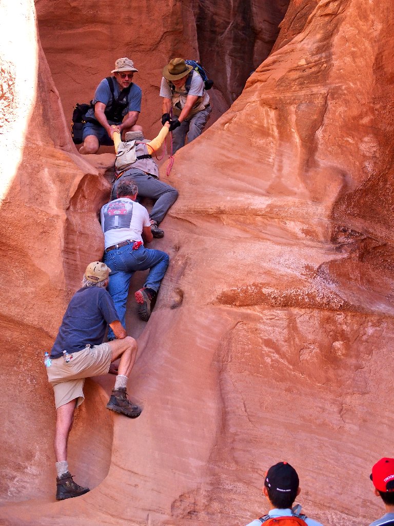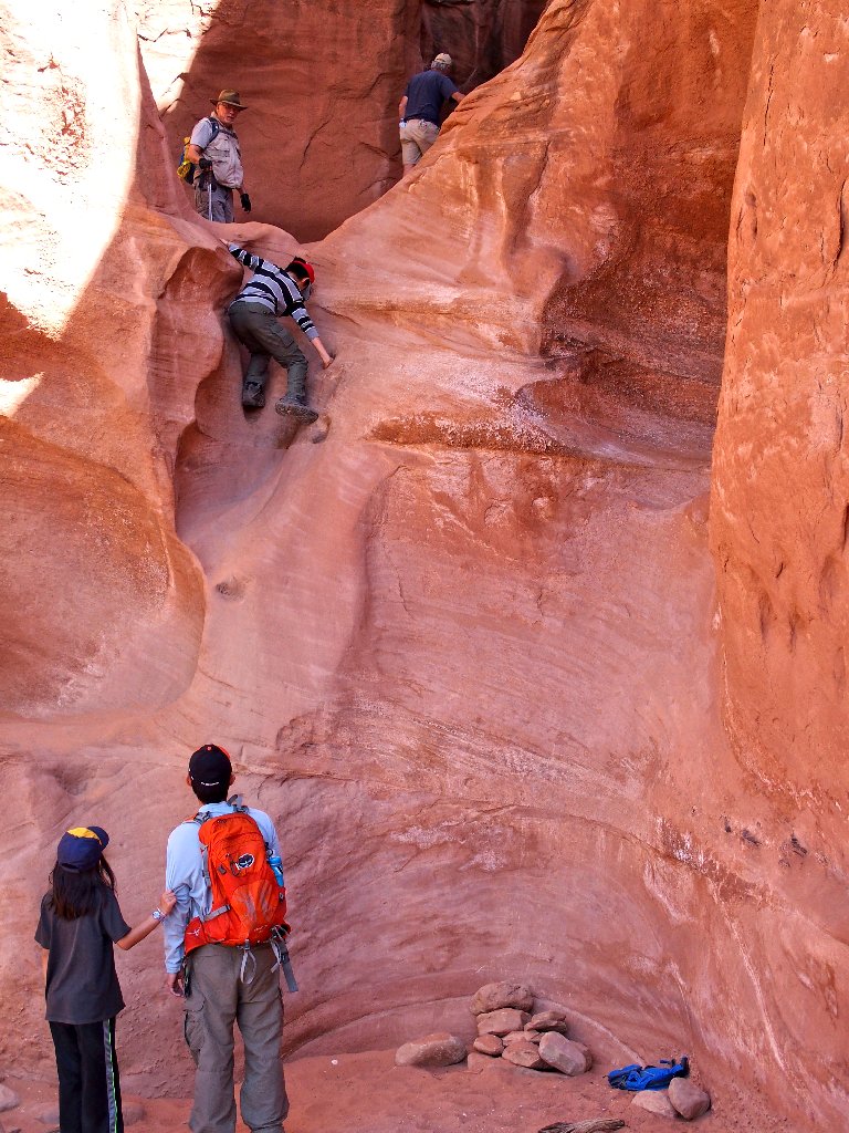 it would be easy enough to install three or four useful metal handholds here; but that's not what BLM does. They provide the exciting stuff, but trailblazing is up to the users. The idea is to have some chance at a wilderness experience, which is pretty much unavailable in the more popular national parks.