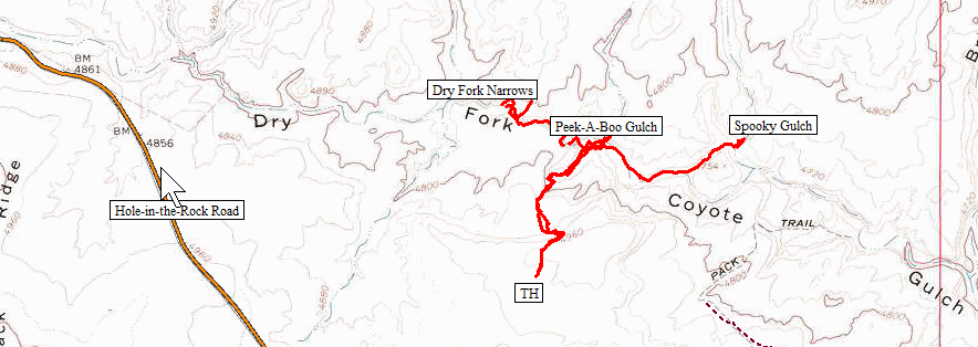 nifty double arches just inside Peekaboo Gulch, but I guess that won't happen.