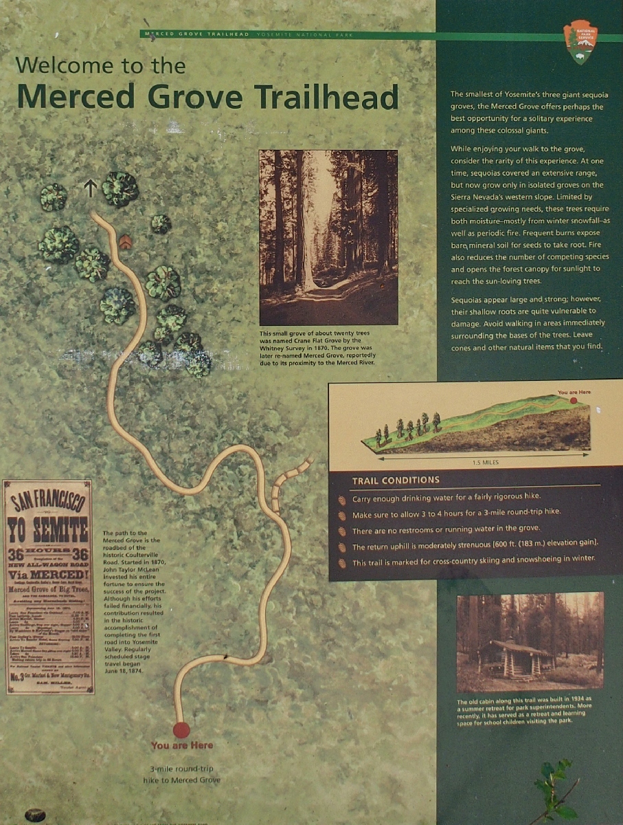 This is the smallest giant sequoia grove in Yosemite. The other two are Tuolumne Grove just east of here and the renowned Mariposa Grove at the southern tip of the park.