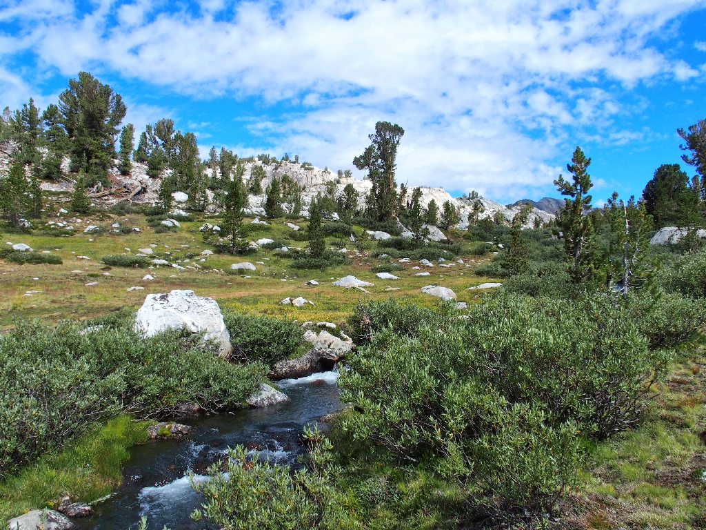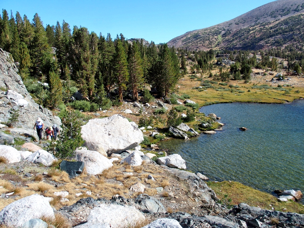 On this, the third and final day of our "get away from the forest-fire smoke" excursion, I can think of no better place to take my four friends than up to the Twenty Lakes Basin area.
