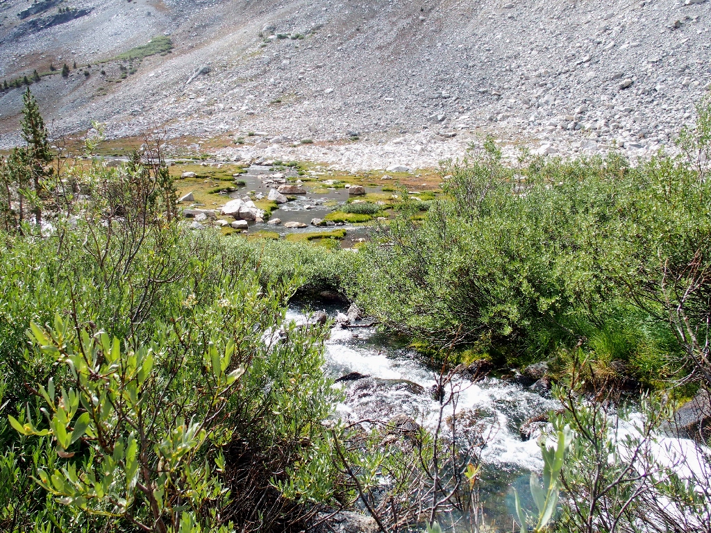 That is a so-called rock glacier — normal moving ice that happens to be covered by scree. This one also happens to be the northernmost glacier of its size in the Sierra Nevada.