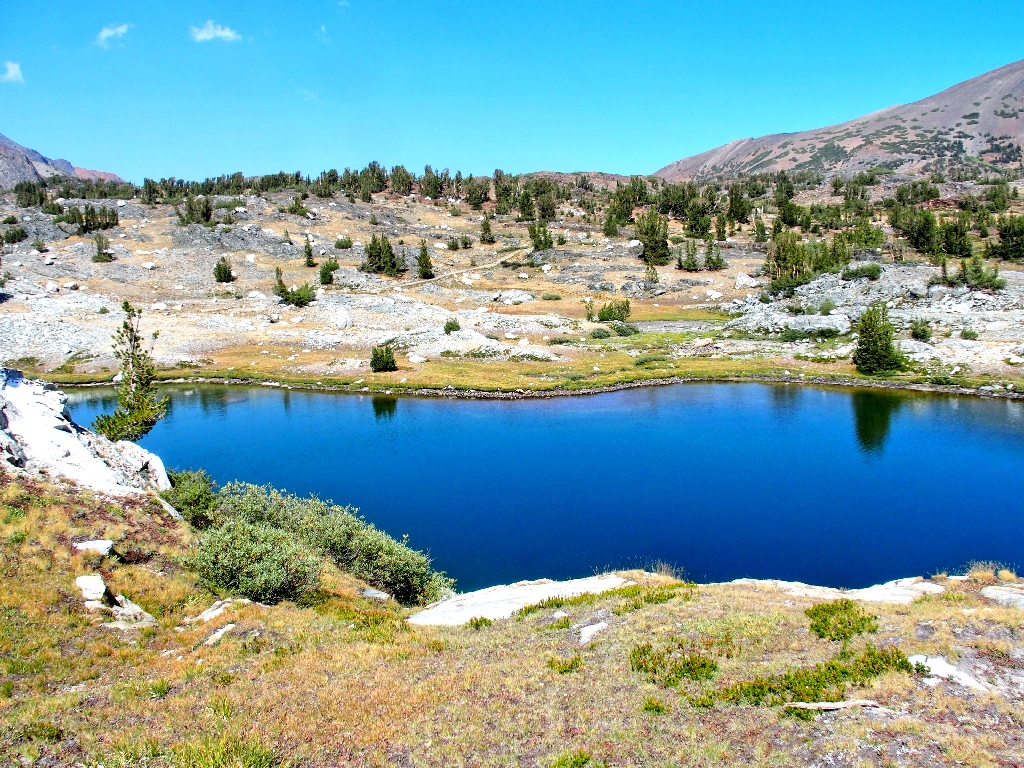 Having expected to drop down earlier, it was my intention to traverse the other side of that lake; but here we are.