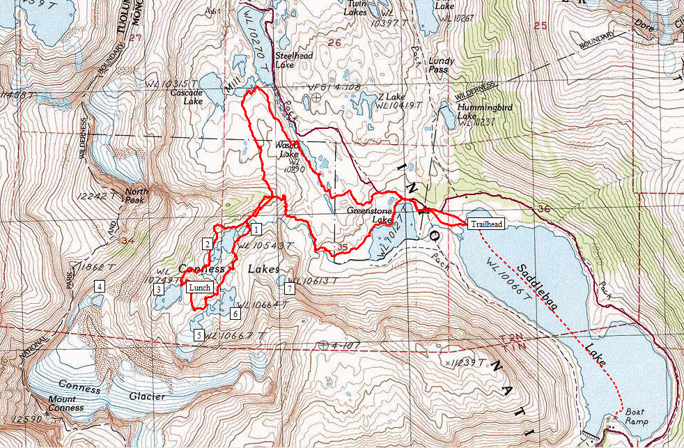 To add a bit of perspective to the hike, here is an overview of the Conness Lakes, shot from high up on the Conness Glacier: