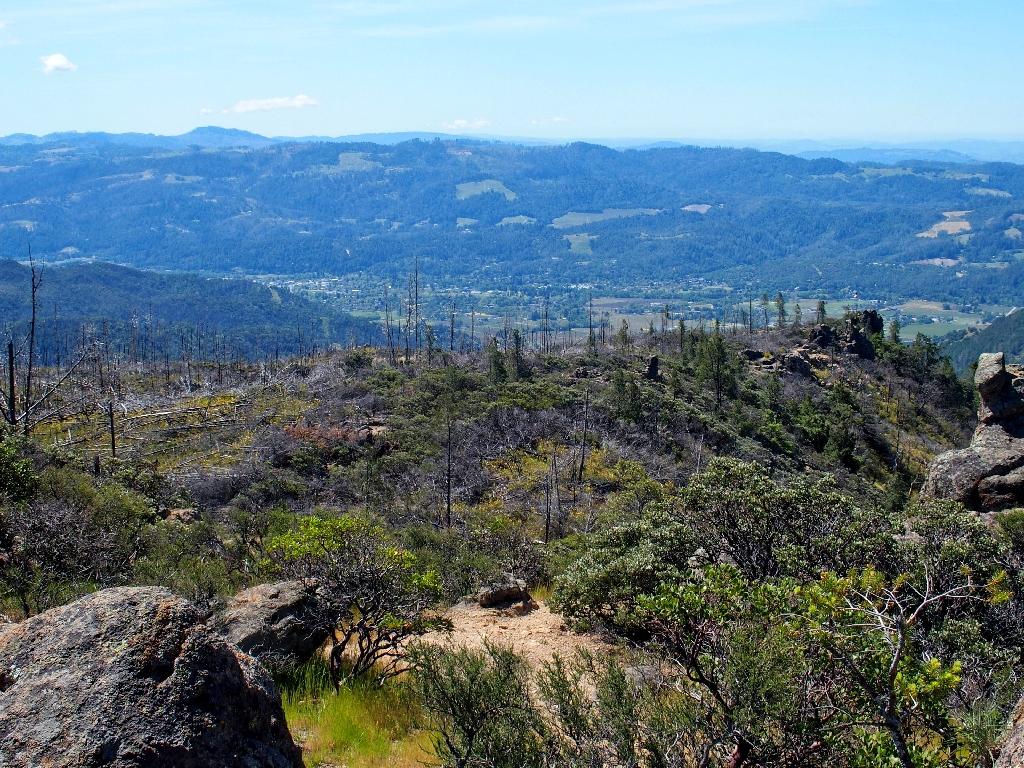 To the south is where I am supposed to continue, but I am rapidly losing interest. The Tubbs Fire of 2017, the most destructive fire in the state to that date, devastated most of my remaining route. Having not come here for a boring walk through dead trees, I will turn back now.