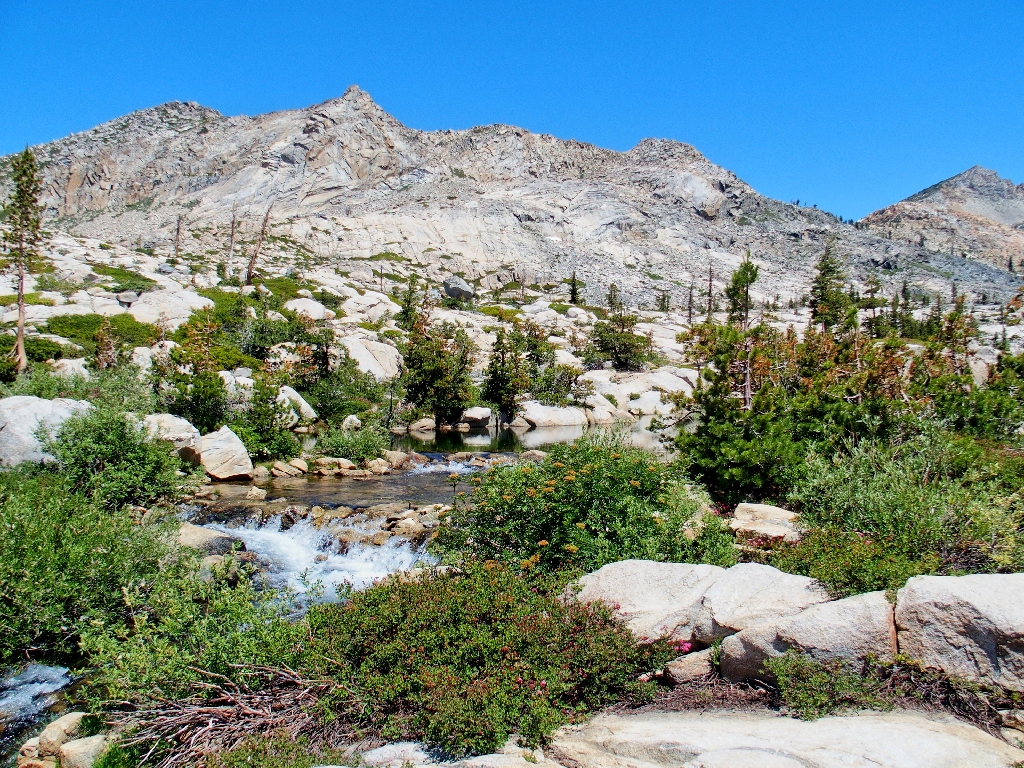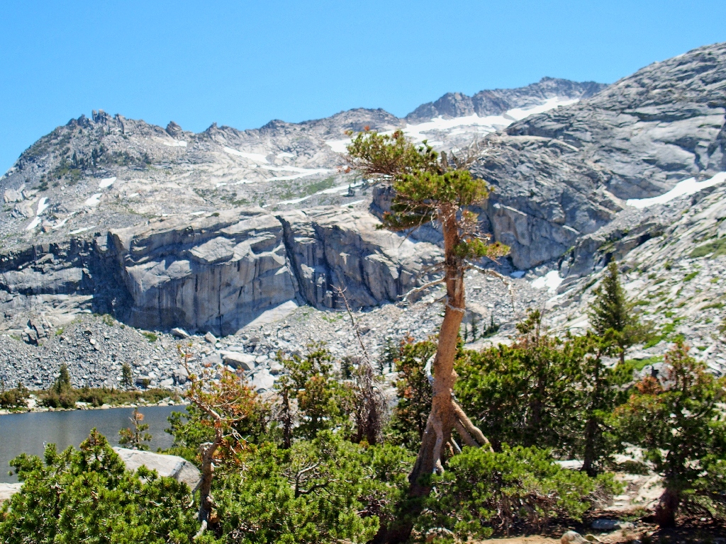 Lower Twin Lake, framed by Little Pyramid Peak and the Gray Wall