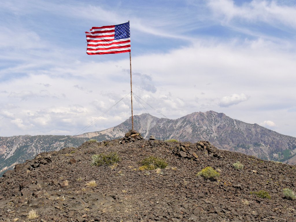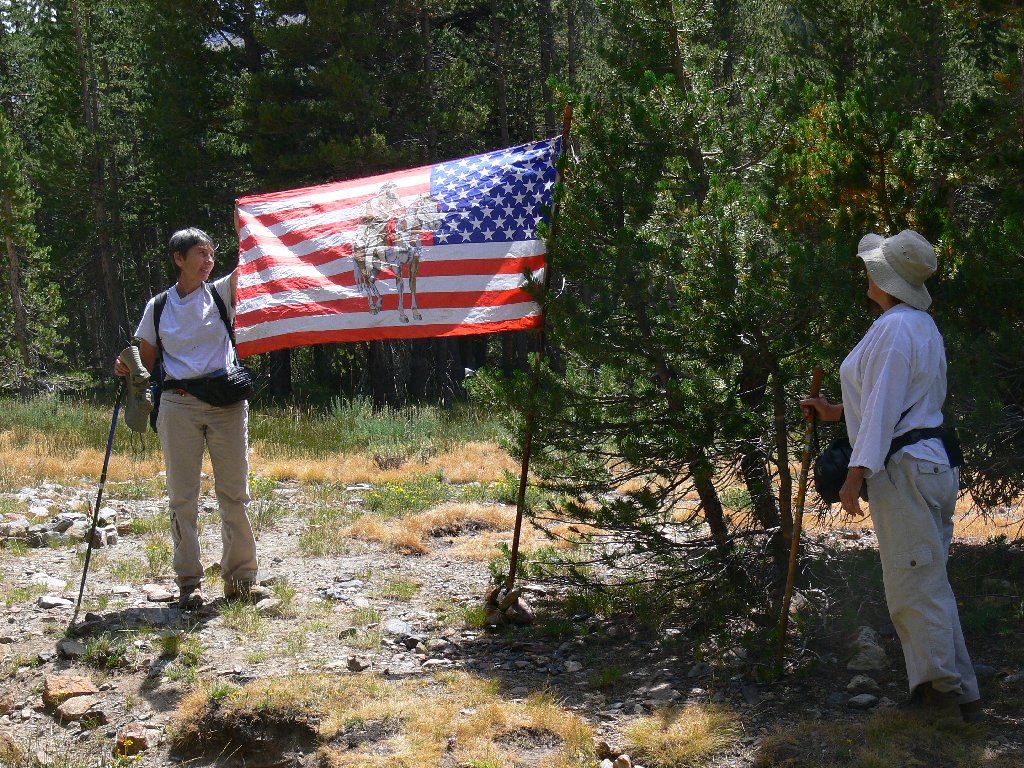 This flag on Ebbetts Peak, Mokelumne Wilderness, has electric lighting