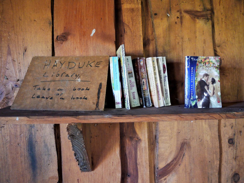 The now-defunct Hayduke Library at Cronan Ranch, near the American River