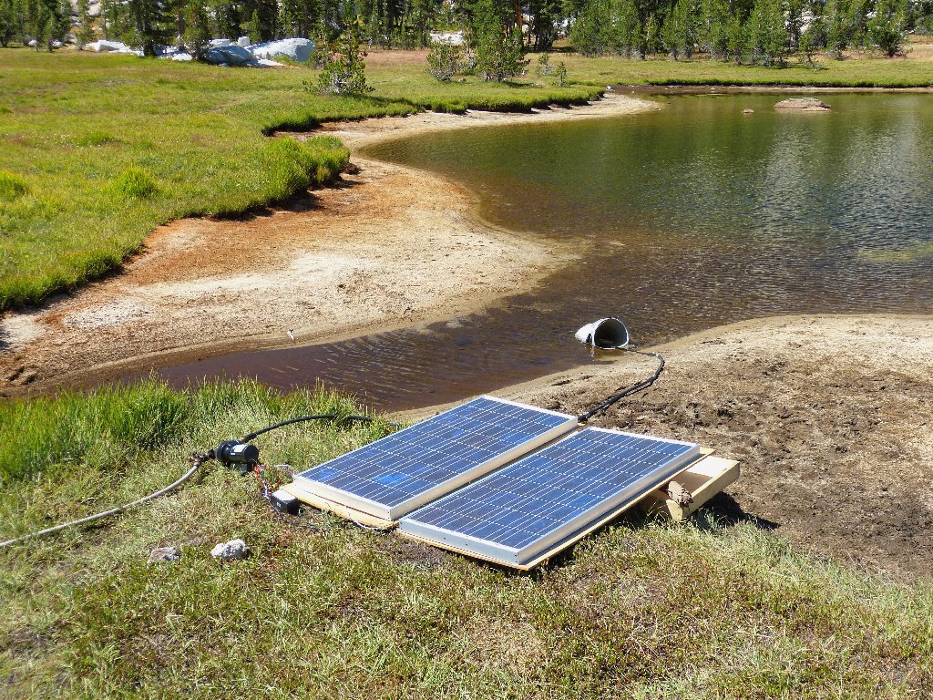 Solar-powered water supply for trail workers at Upper Cathedral Lake, Yosemite NP