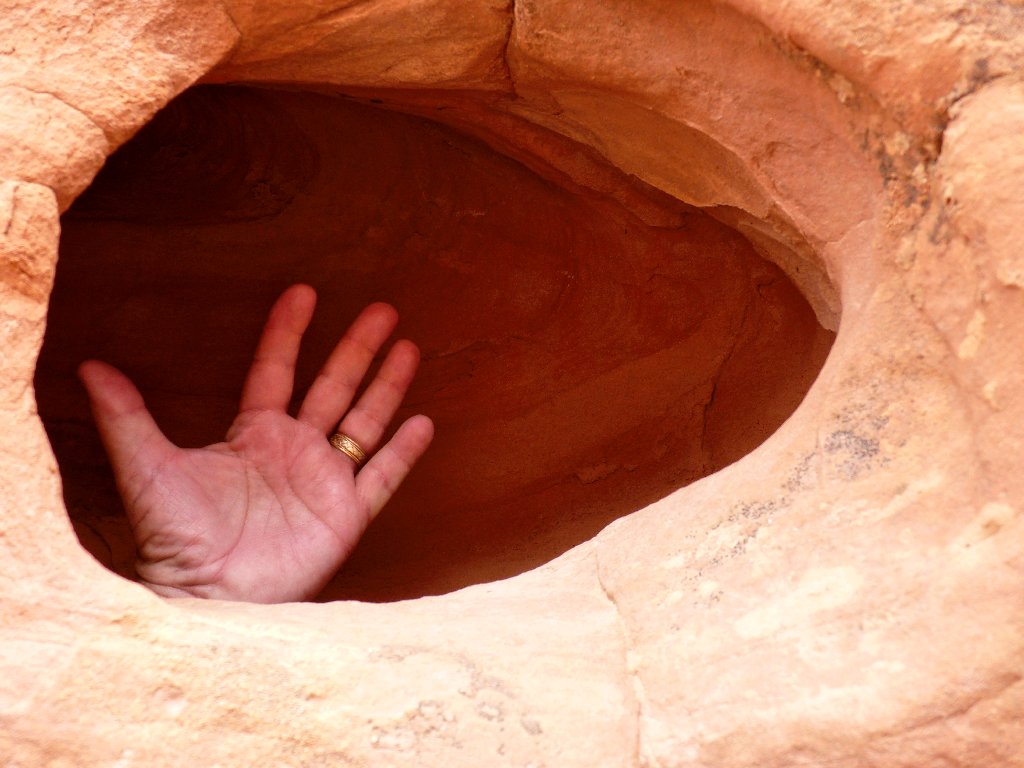 Trapped inside a rock at Upper Muley Twist Canyon, Capitol Reef NP, Utah