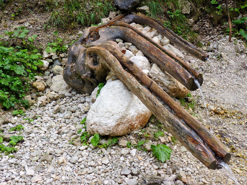Carved water troughs on the Val Ciamin Trail, Dolomite Mountains, Italy