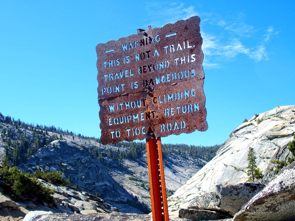 A stern directive at the head of Tenaya Canyon, Yosemite NP